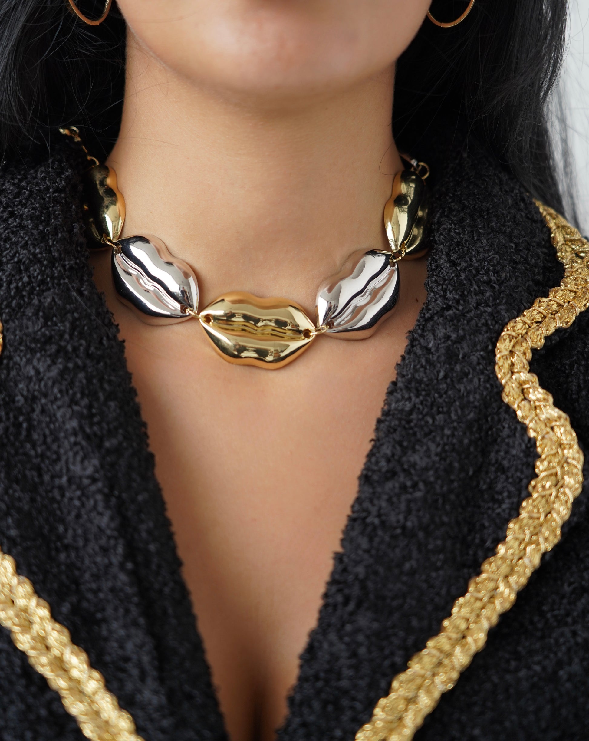 Statement chunky necklace available in three finishes: full gold, gold & silver mix, and full silver.