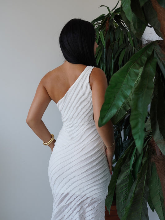 Asymmetric Pinstripe Mini Dress with Statement Sleeve