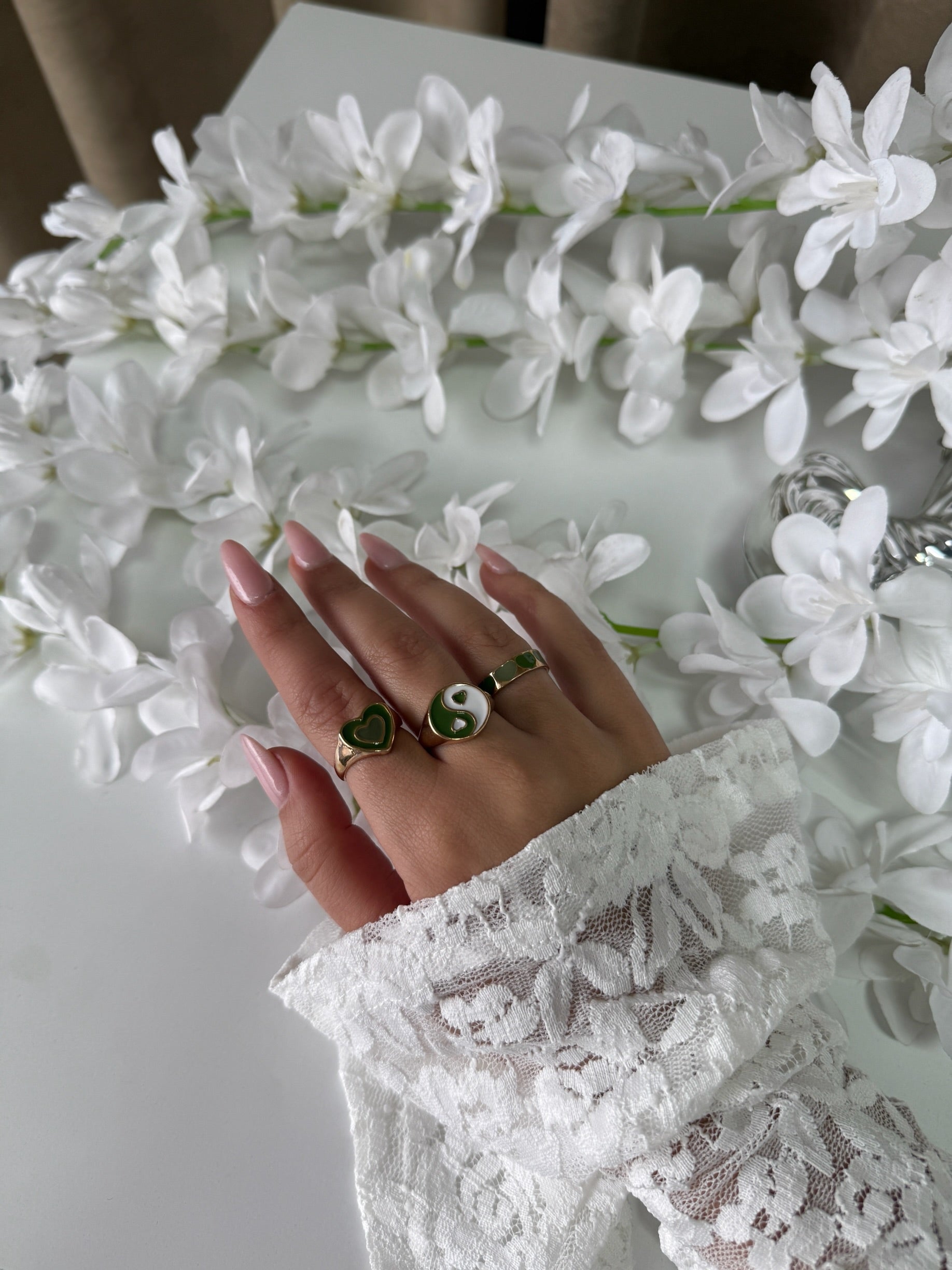 3-piece perfection in green & gold.”