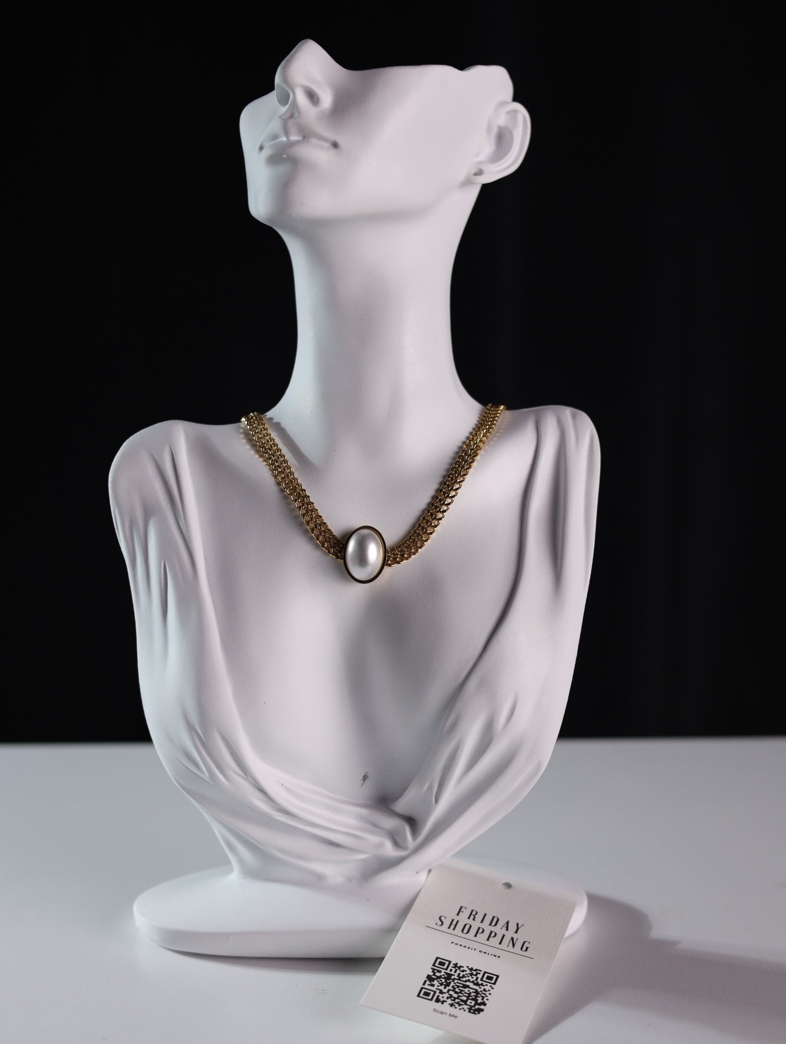 A timeless gold-toned choker featuring a luminous central pearl. Crafted from stainless steel, this necklace combines elegance and simplicity – perfect for both daily wear and special occasions.