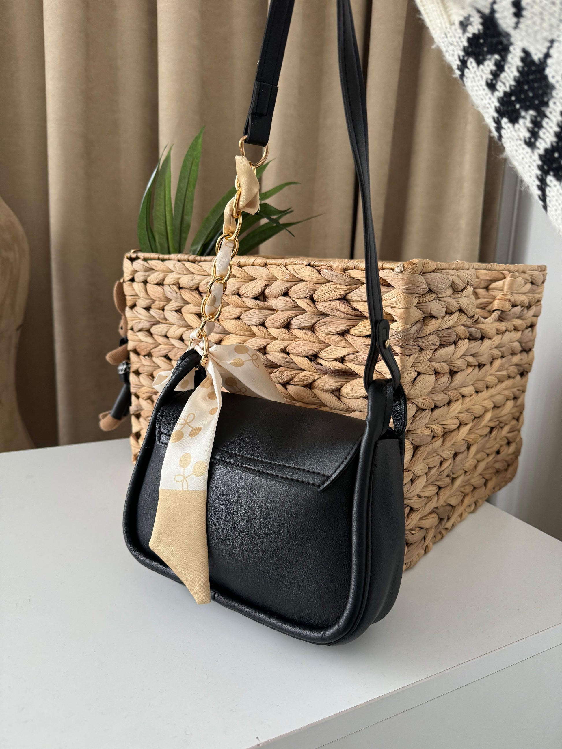 FSH Bag Women's New Fashionable Chain Bag Square Bag Ins One-Shoulder Oblique Bag Black