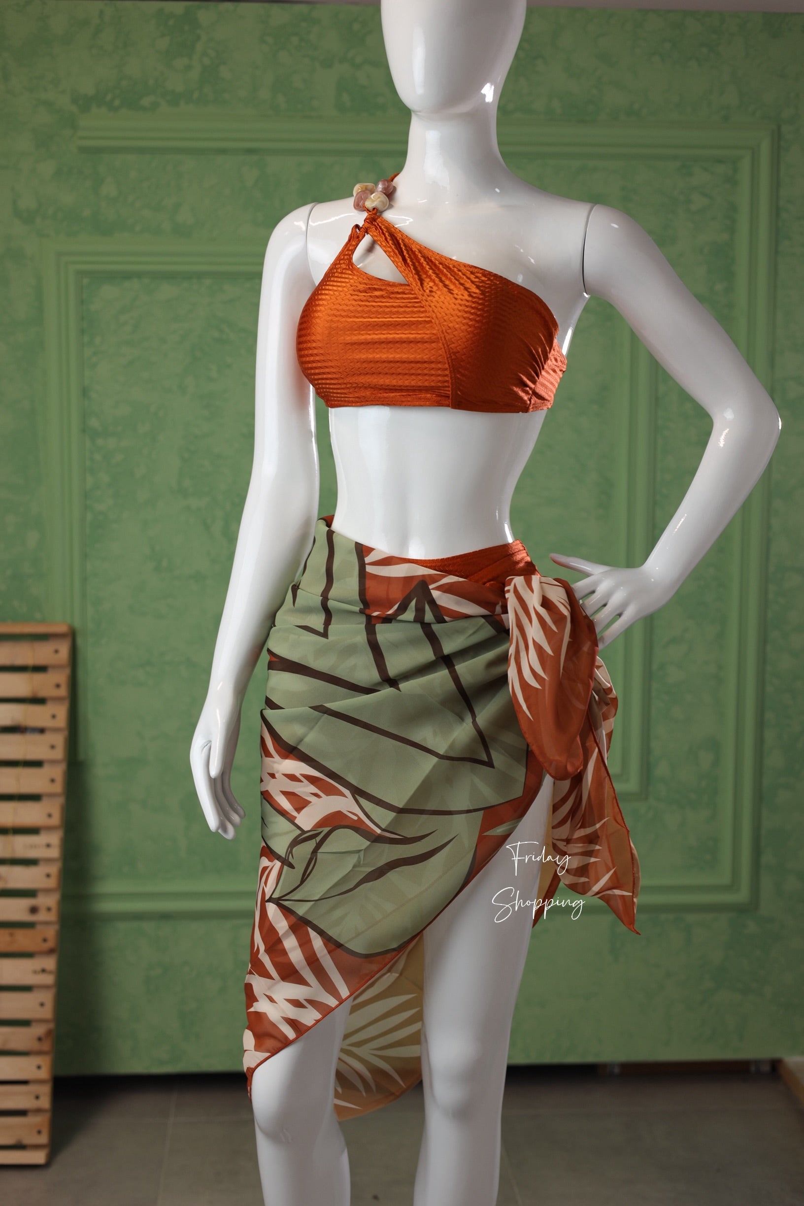 Black Bikini with Geometric Pareo Wrap Set 3pcs
