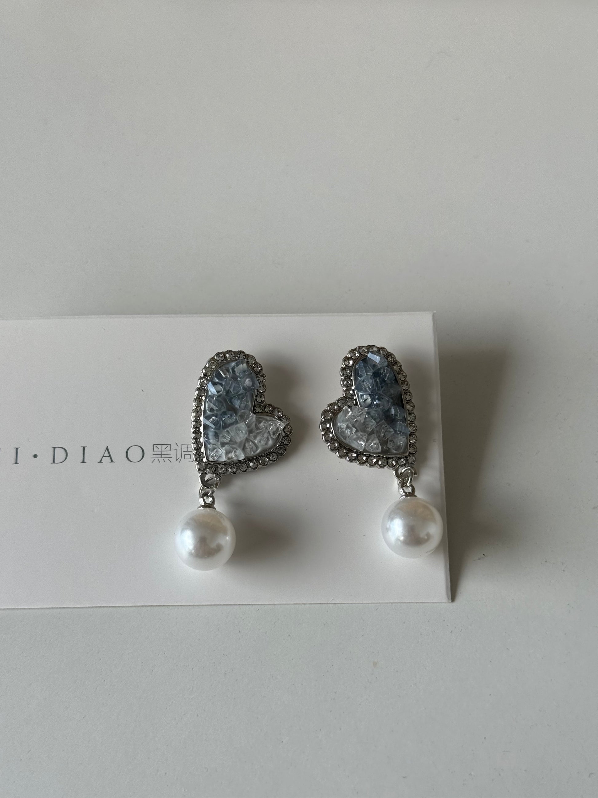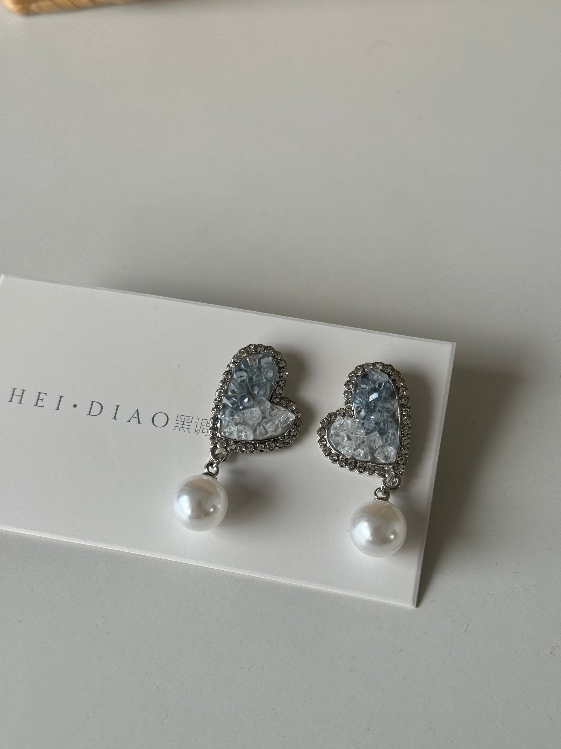 Blue Sea Heart Crystal Earrings