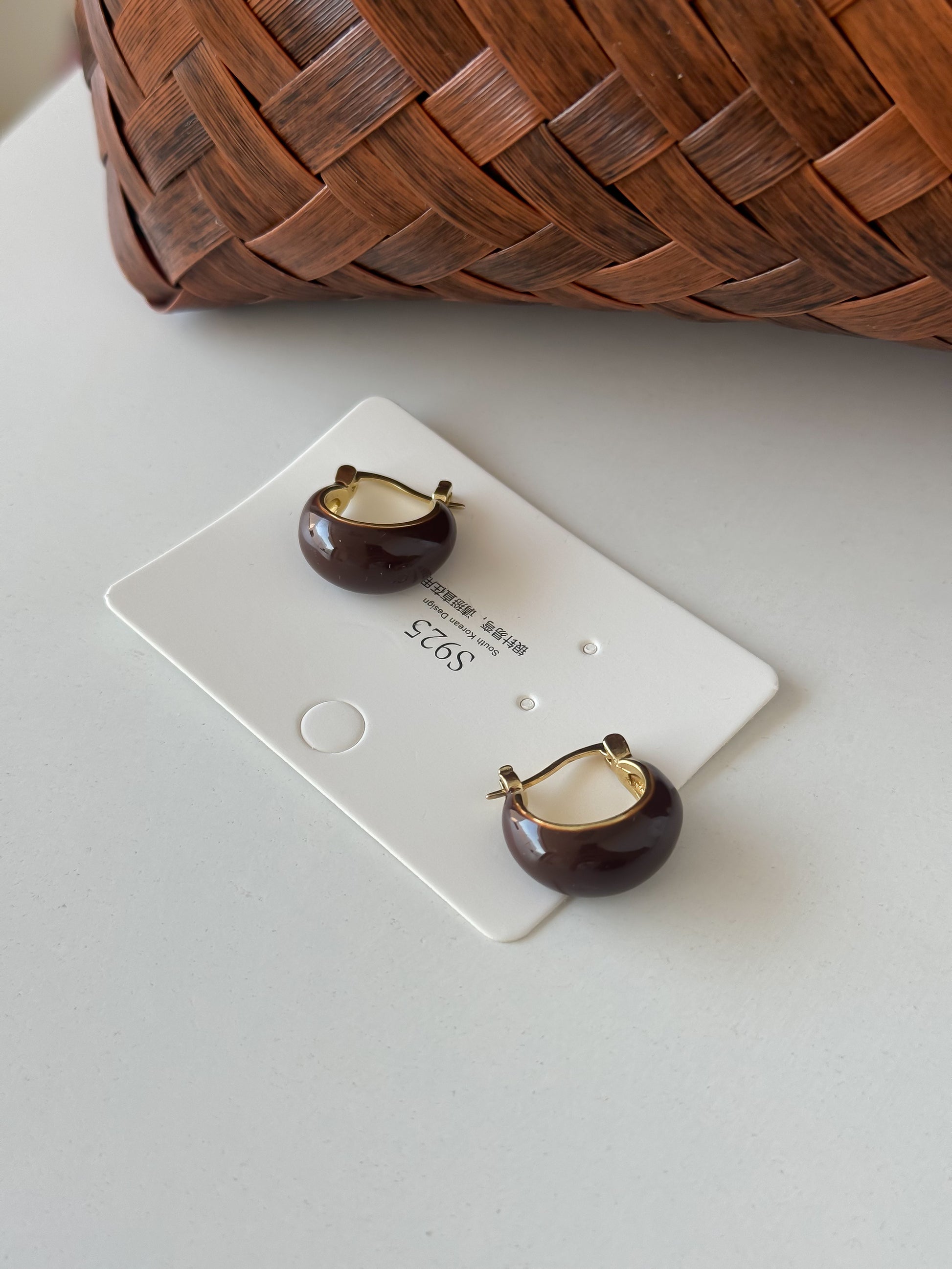 Brown Resin Hoop Earrings with Gold Accents