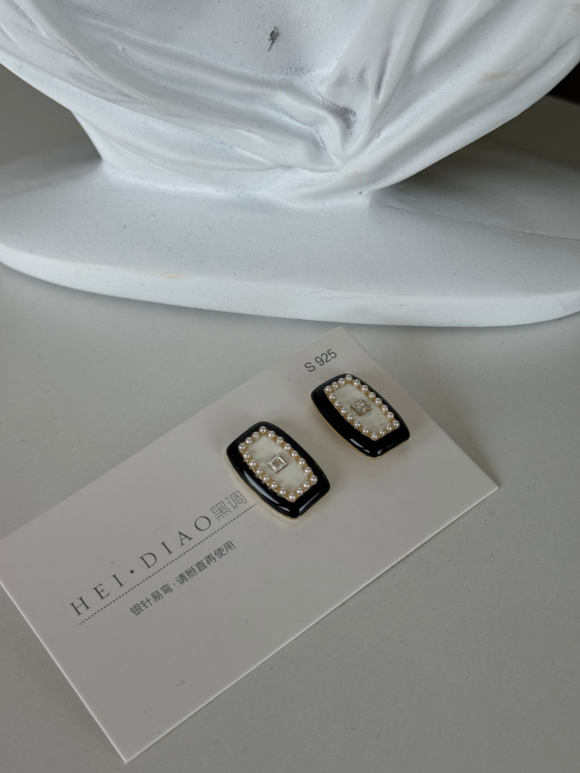 Elegant Black & Pearl Stud Earrings – Timeless Charm
