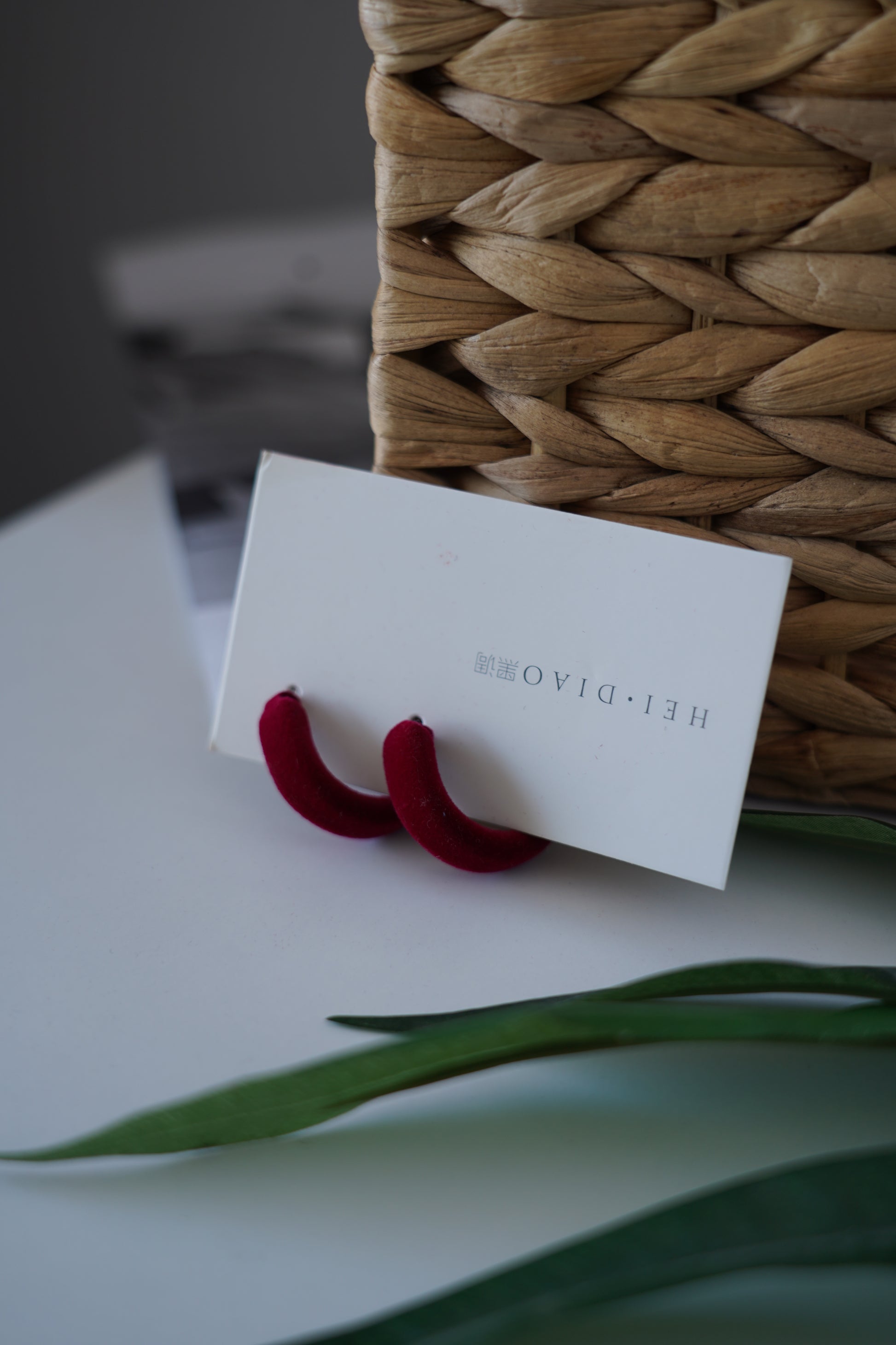 Elegant velvet earrings in deep red,