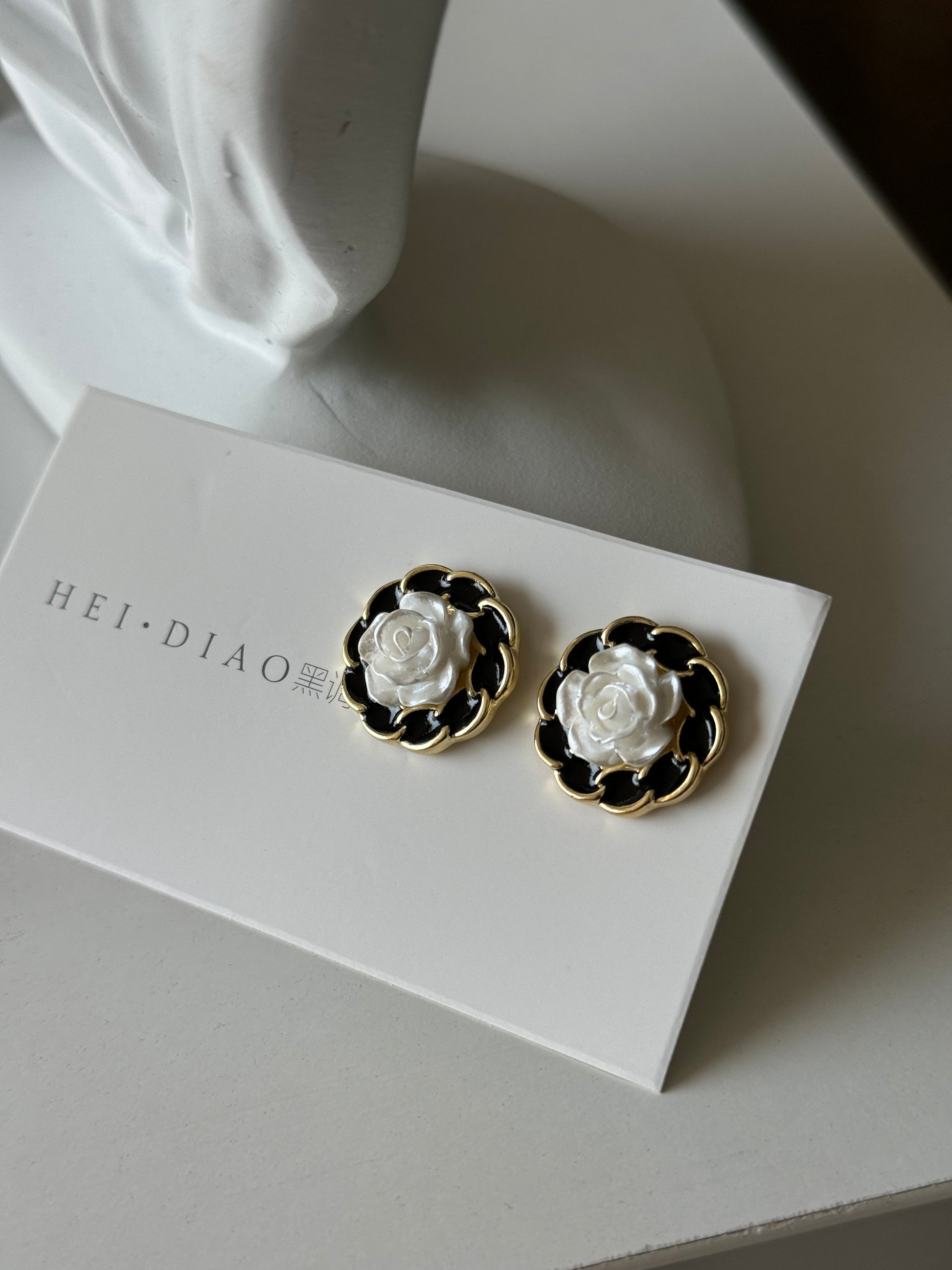 Flower Earrings Black White