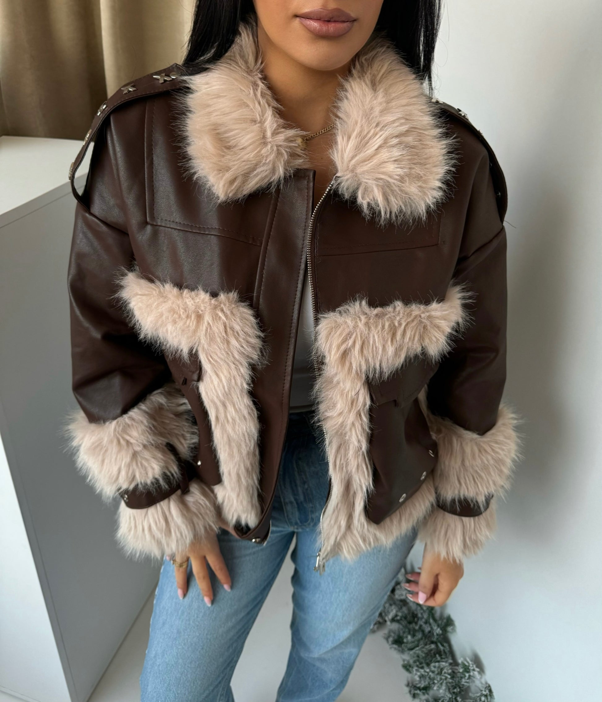 Stylish Jacket Leather and Plush Details