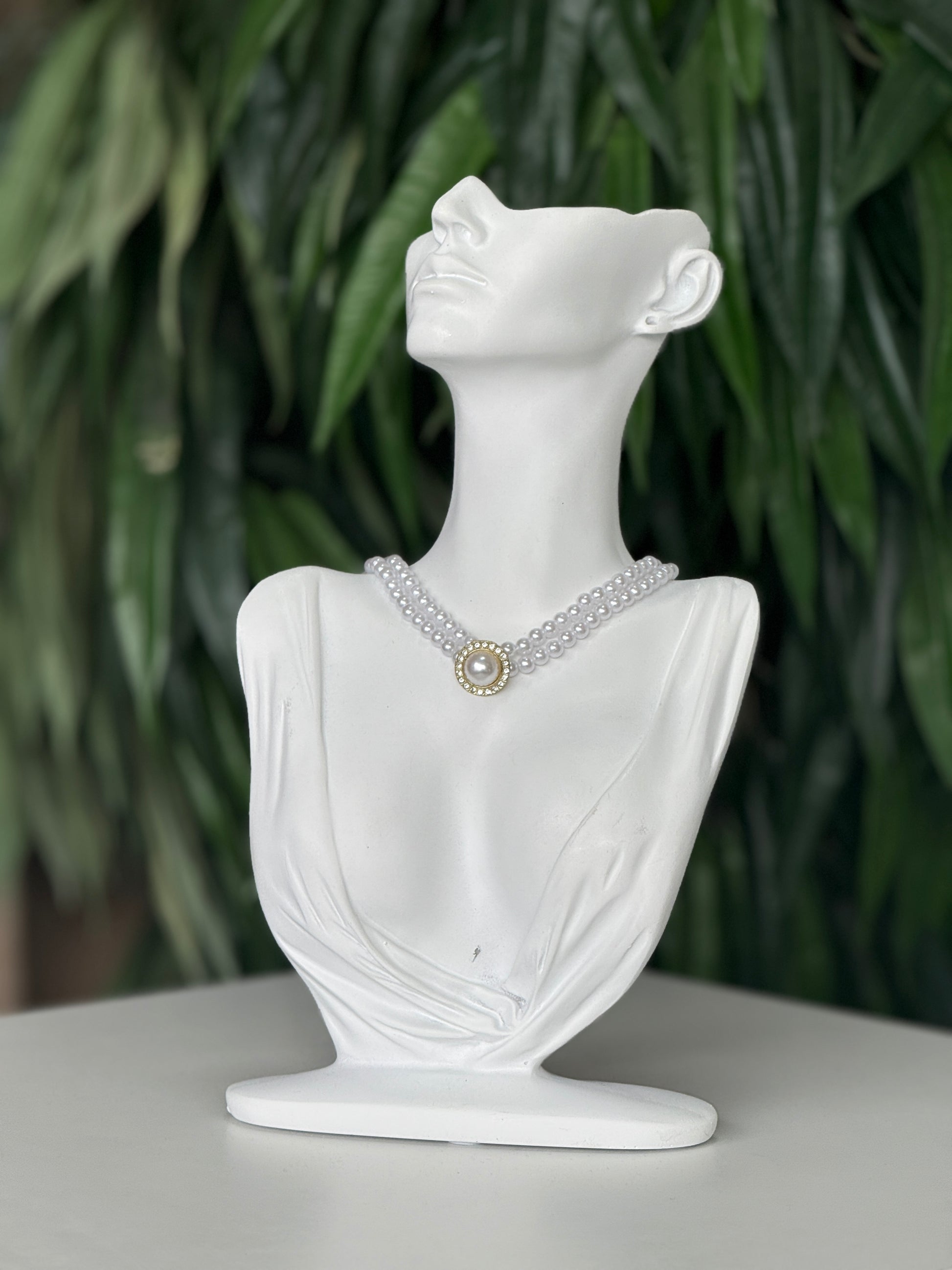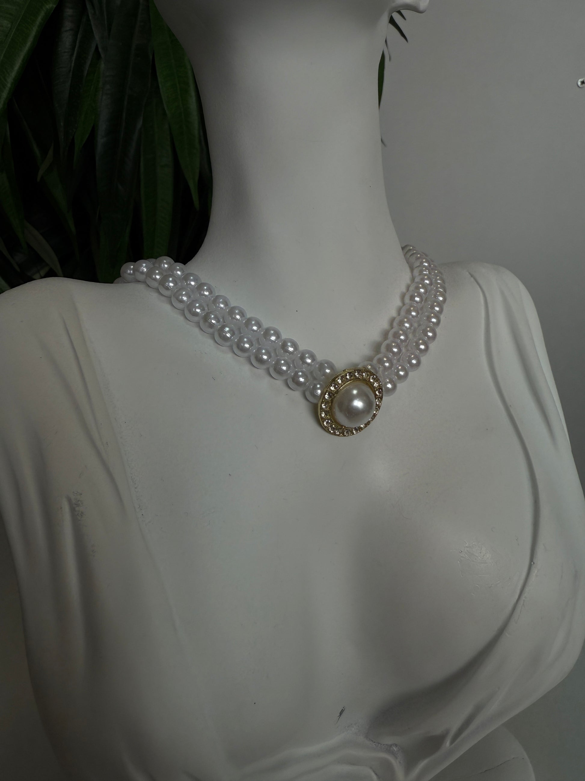 Elevate your elegance with the timeless Pearl Grace necklace. Featuring two delicate rows of high-shine imitation pearls, this piece is centered with a vintage-inspired gold medallion embellished with a luminous pearl and subtle crystal details. Perfect for weddings, evening events, or any moment where sophistication is key.