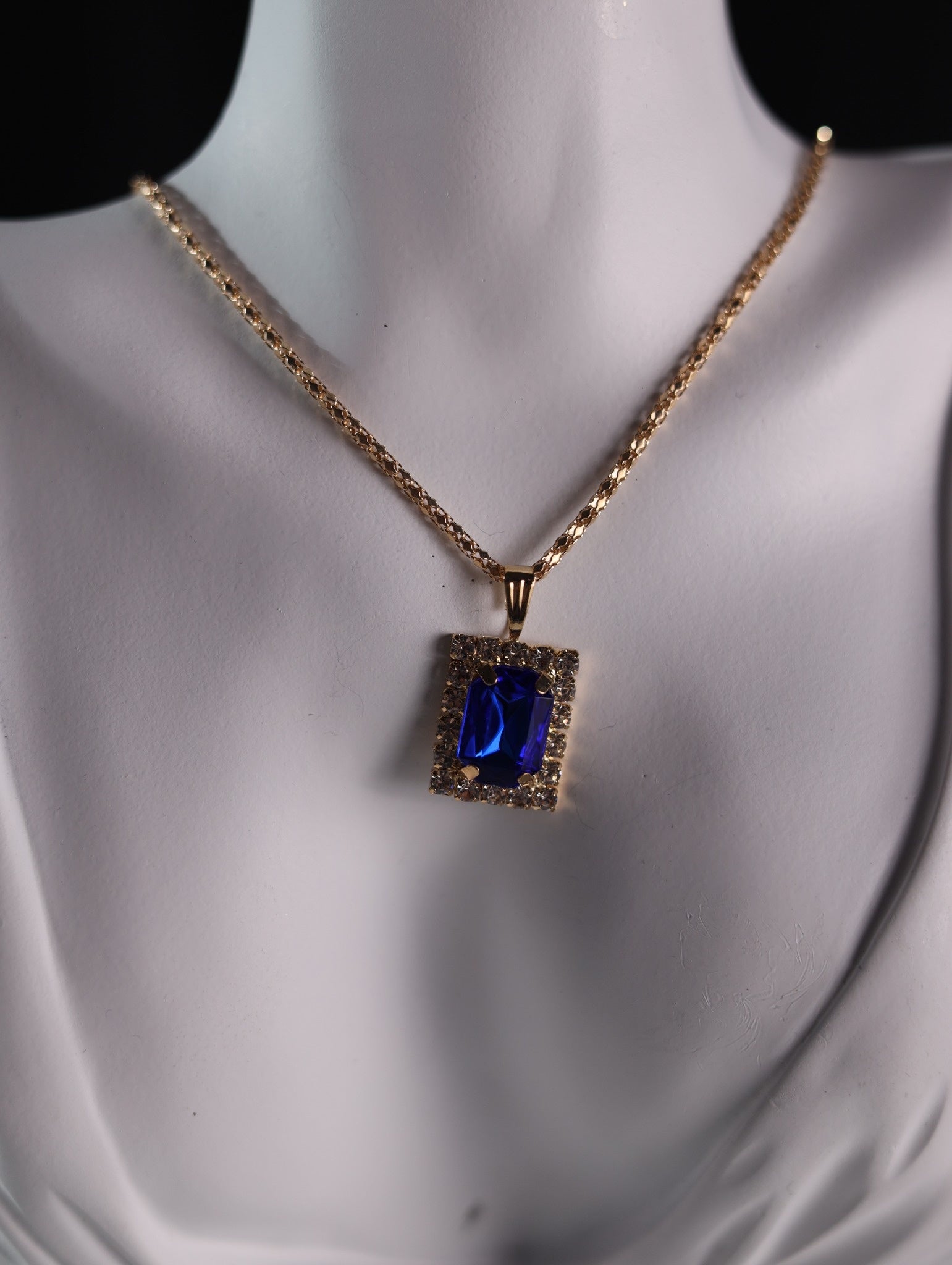 Necklace with sapphire-blue pendant
