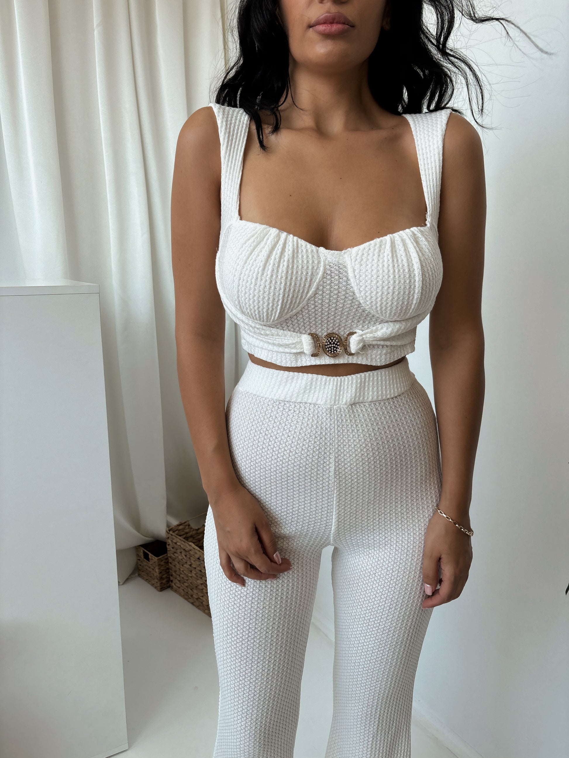 Ruched Crop Women Top & Chic High Waist Pants Set