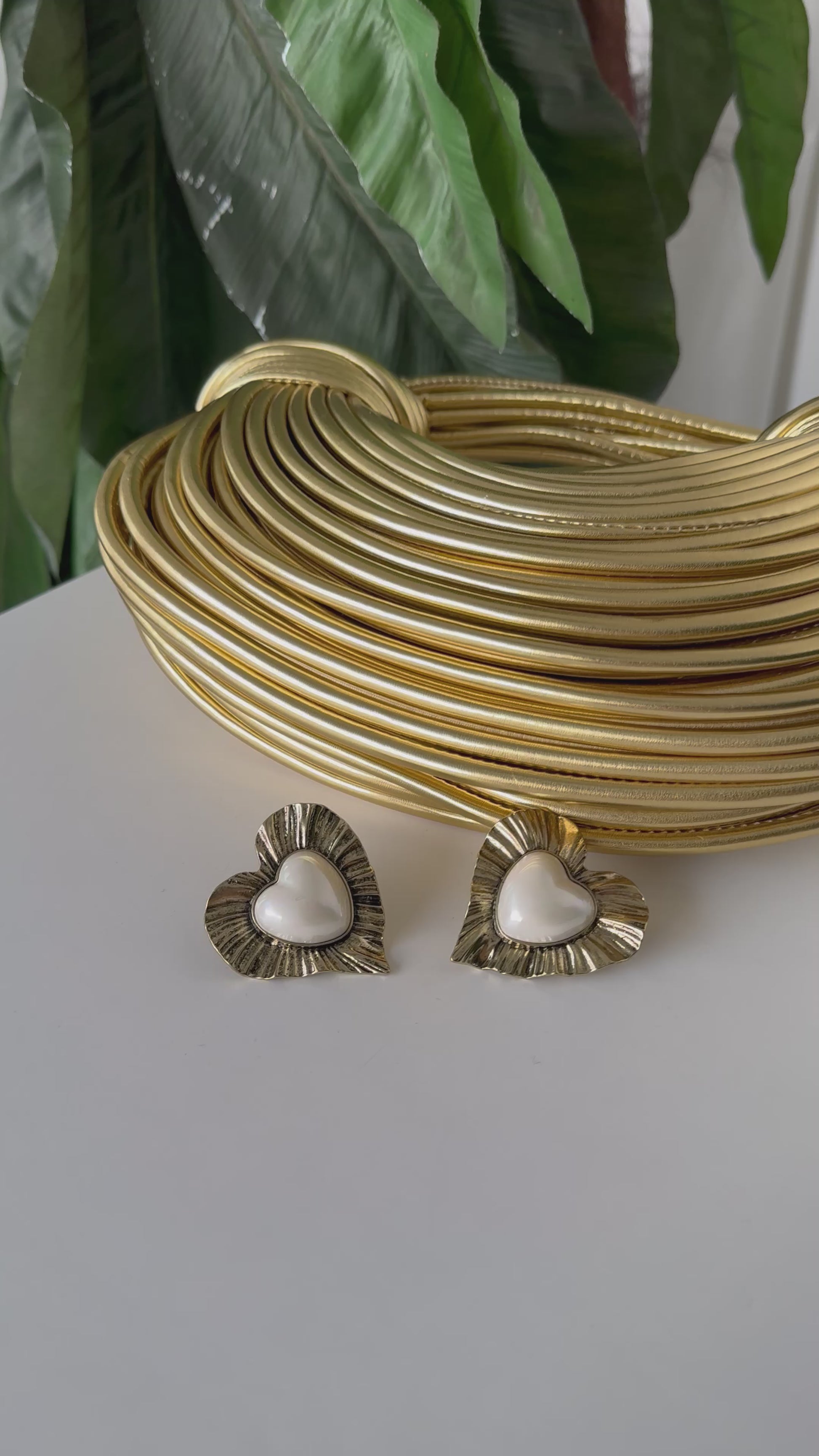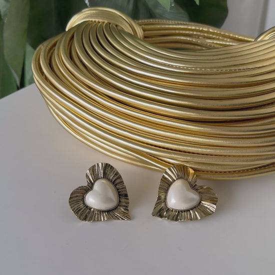 Vintage Erwin Pearl Hearts Earrings, Gold