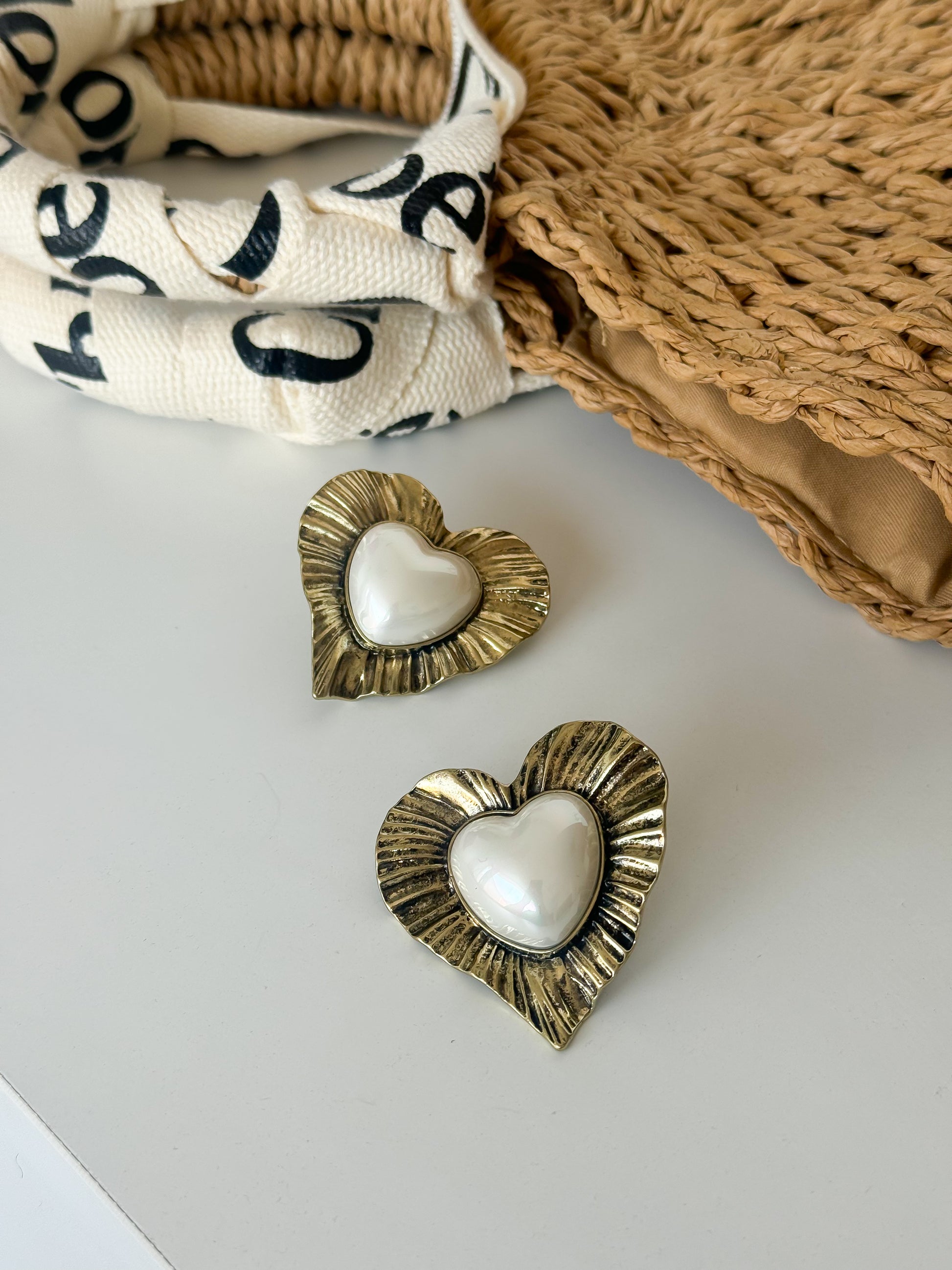 Vintage Heart Pearl Earrings